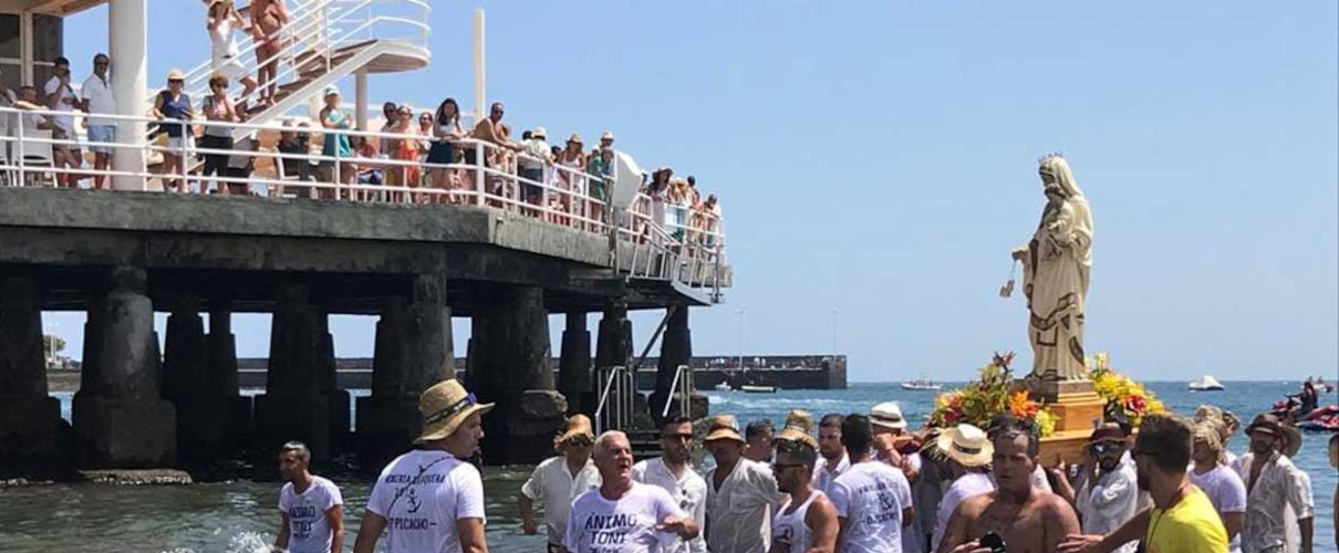 Nel villaggio di pescatori di El Médano, i pellegrini vestiti con i loro tipici costumi da pescatori accompagnano ogni anno la patrona Nuestra Señora de Las Mercedes fino alla spiaggia, dove ha luogo un commovente imbarco.