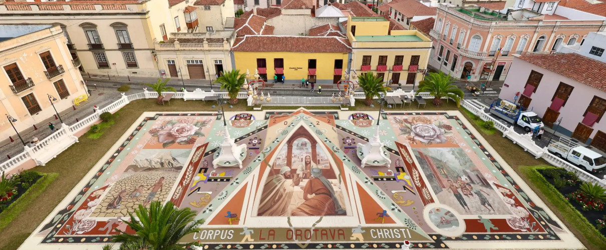 Come ogni anno, il comune di La Orotava si veste a festa per accogliere la tradizionale ricorrenza del Corpus Domini e, all'interno del suo programma, i residenti espongono i tappeti e gli arazzi di fiori e sabbia che hanno realizzato e che poi adornano il centro del paese. È un appuntamento emozionante e straordinario dei festeggiamenti, perché carico di un grande senso religioso, in cui tutta la città di La Orotava si affida al Creatore che si manifesta nell'Eucaristia.