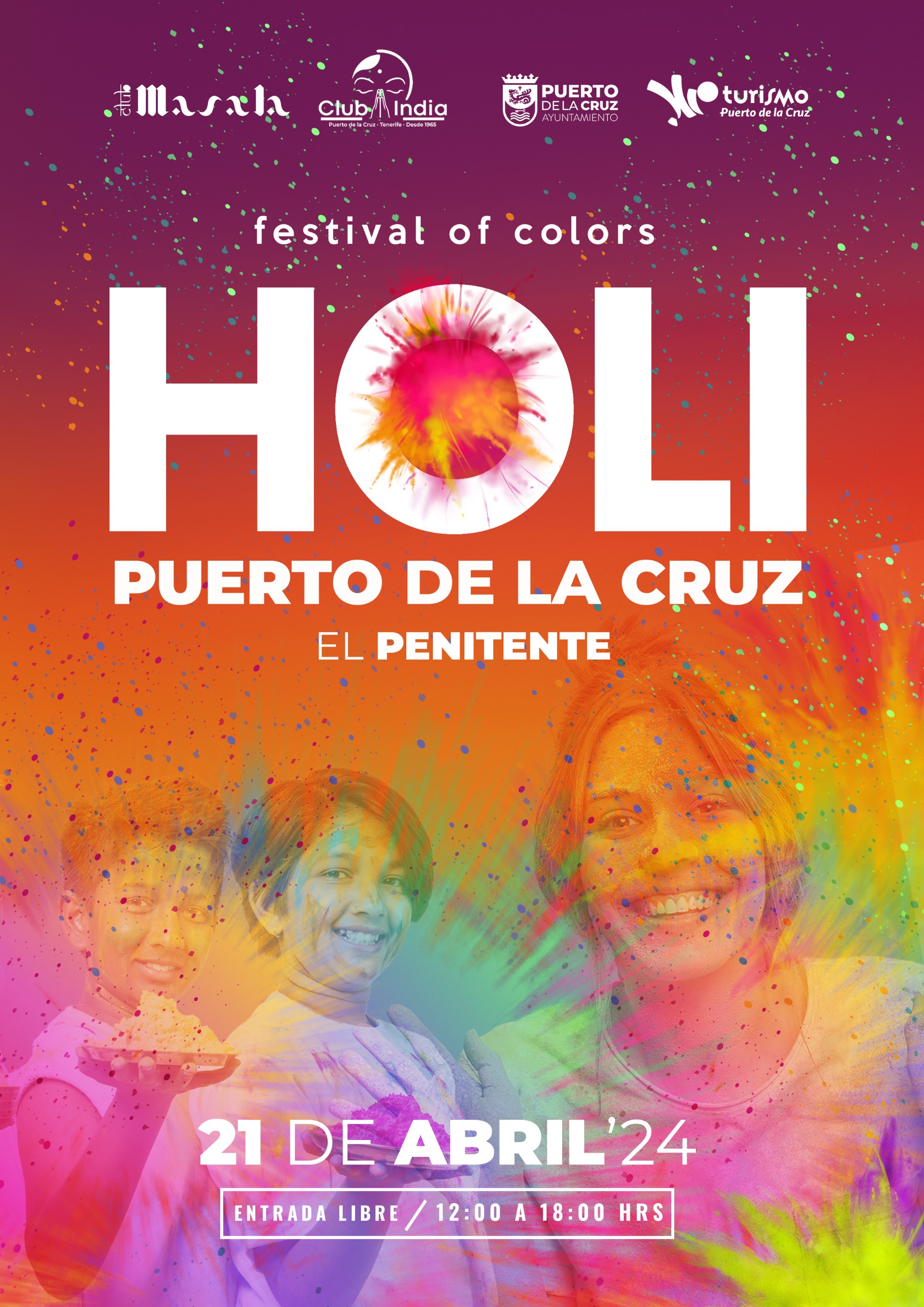Il 21 aprile il comune di Puerto de la Cruz celebra una festa assolutamente speciale per tutta la comunità indù della città, l'Holi Festival of Colors. Organizzato dal Club India e dal suo presidente Sunil Rijhwani, il festival prevede la performance, tra gli altri, dei DJ Amine e Vik. Il programma di questo evento variopinto sarà completato da una Bollywood Masterclass tenuta da Sheri Masala e da varie esibizioni del Club India e dei Dancing Nomads.