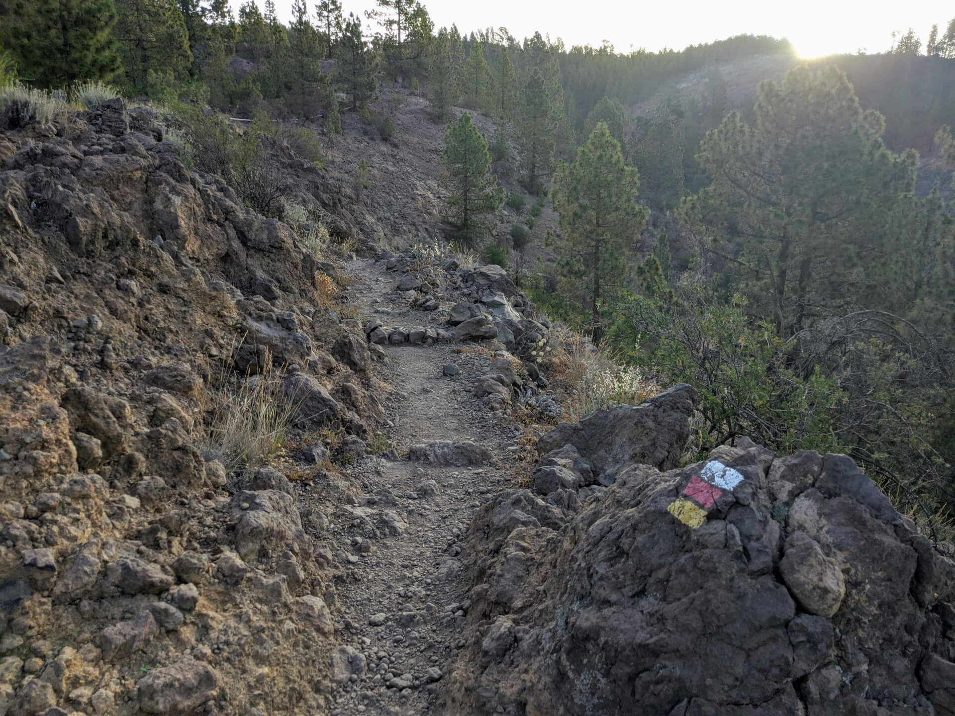- Km 5,3 Si esce sul sentiero Madre del Agua. Prendete il PR 83 Cruz de Tea e proprio sulla sinistra vedrete il PR 83.1 Las Vegas, che sarà la via del ritorno. Ora quasi due chilometri in discesa con alcune parti tecniche. Voliamo!
