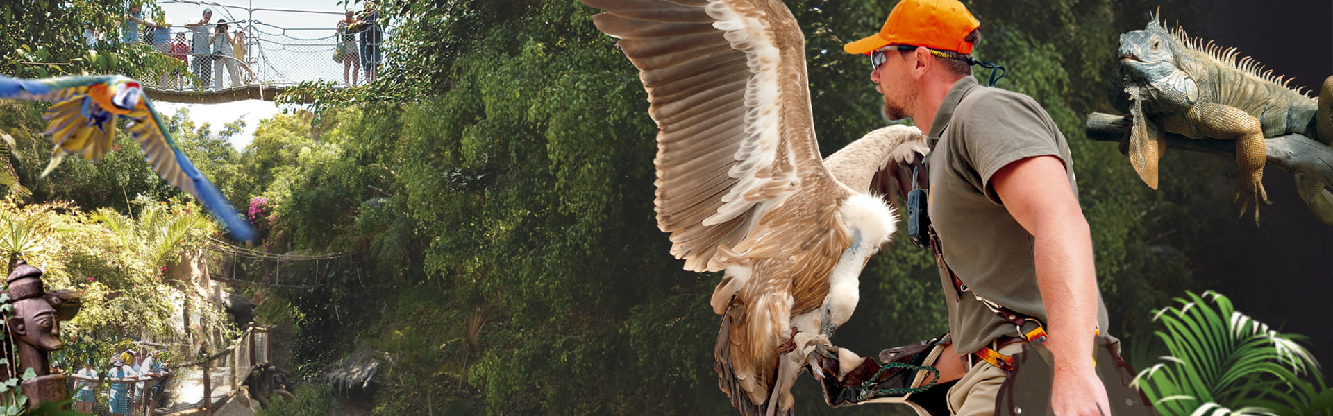 Orangutan, gibboni, scimmie cappuccine, uistitì, scimmie saimiri, siamanghi, cercopitechi, servali, coccodrilli, suricati, coati, emù, wallaby, daini, procioni e molti altri ancora... Vivi esperienze uniche passeggiando nella voliera tra gli uccelli in volo libero, camminando tra i lemuri, o esplorando il Grande Giardino delle Orchidee e il Jungle Raid.